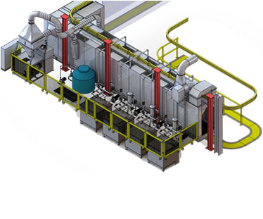 The Batch Burn-Off Washer is designed for secondary cleanup of burned off racks, hooks, fixtures and parts. Overhead and corner nozzles spray water on the part, flushing the loose paint ash from the surface.
